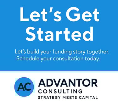 Getting your organization the funding it needs doesn’t have to be overwhelming or out of reach. Advantor Consulting Group provides the knowledge, connections, and hands-on guidance to make it possible. Contact us today for a complimentary funding assessment—and discover how we can help fuel your next stage of growth.